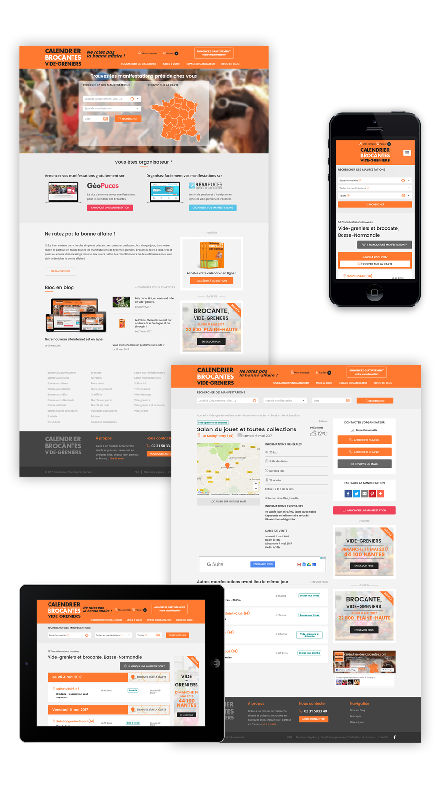 Référence nationale pour les amateurs de brocantes, vide-greniers et salons antiquaires, le site Calendrier-des-brocantes.com nous a confié la refonte complète de son écosystème digital en 2017. Un projet technique ambitieux, déployé autour d’un socle WordPress connecté à un framework PHP accompagné d’un développé sur mesure.
